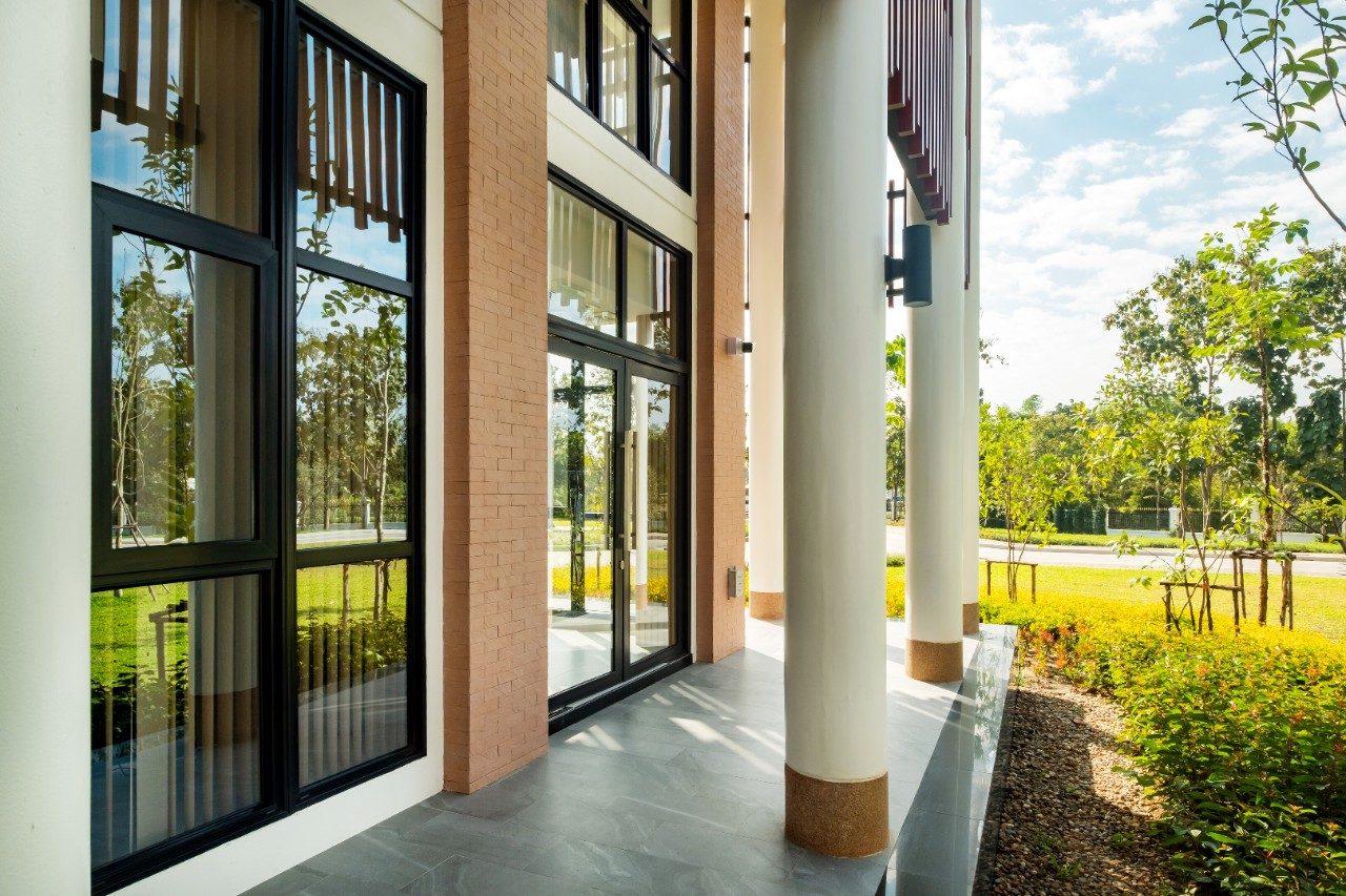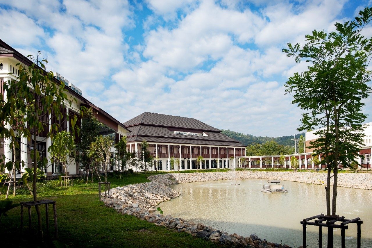 Assistant Professor Dr. Rattaphol Angkasit, a professor at the Faculty of Architecture, Chiang Mai University assigned to design and oversee the architecture of the Agricultural Research and Development Center, incorporates the Lanna style to the new context, showcasing discernible details and aesthetics of the vernacular architectural characteristics. The northern style Punya roof is designed into descending levels from the three buildings structures, bringing the Lanna flare to lessen the imposing scale of the buildings. The steepness enhances rainwater drainage while hiding the system work of the air conditioning installed at the upper part of each structure.