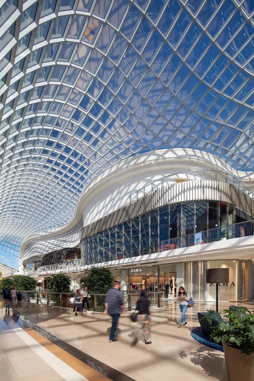 Das Chadstone Shopping Centre in Melbourne, Australien, ist ein erstaunliches Stück Technik und Architektur. Mit seinem atemberaubenden Glasgitterdach ist das erweiterte Gebäude heute das größte geschlossene Einkaufszentrum in der südlichen Hemisphäre.