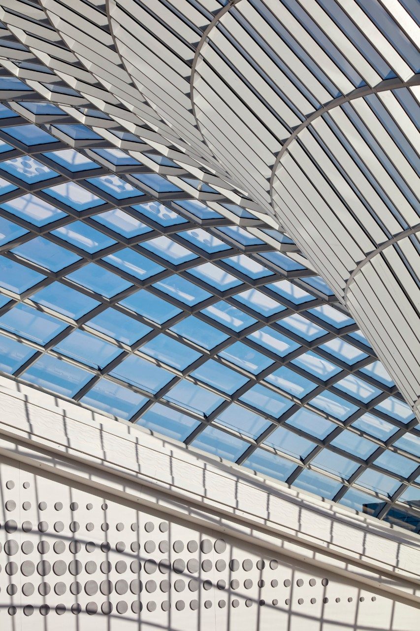 Guardian SunGuard® Solar Silver 20 wurde aufgrund seines hohen Sonnenschutzniveaus für das Glasdach ausgewählt, insbesondere bei Anwendungen, bei denen exzessiver solarer Wärmeeintrag zu einem Problem führen würde. Das beschichtete Glas bietet eine neutrale übertragene Farbe für den visuellen Komfort von Käufern und Einzelhandelspersonal. Guardian ClimaGuard® 1.0 T wurde auch für die Dachverglasung ausgewählt. Die neutrale Farbe und die hohe Lichtdurchlässigkeit sorgen für ein angenehmes Raumklima und fördern aktiv das Wohlbefinden. Die Dachverglasung beinhaltet auch eine rauchgraue PVB-Zwischenschicht von Vanceva.