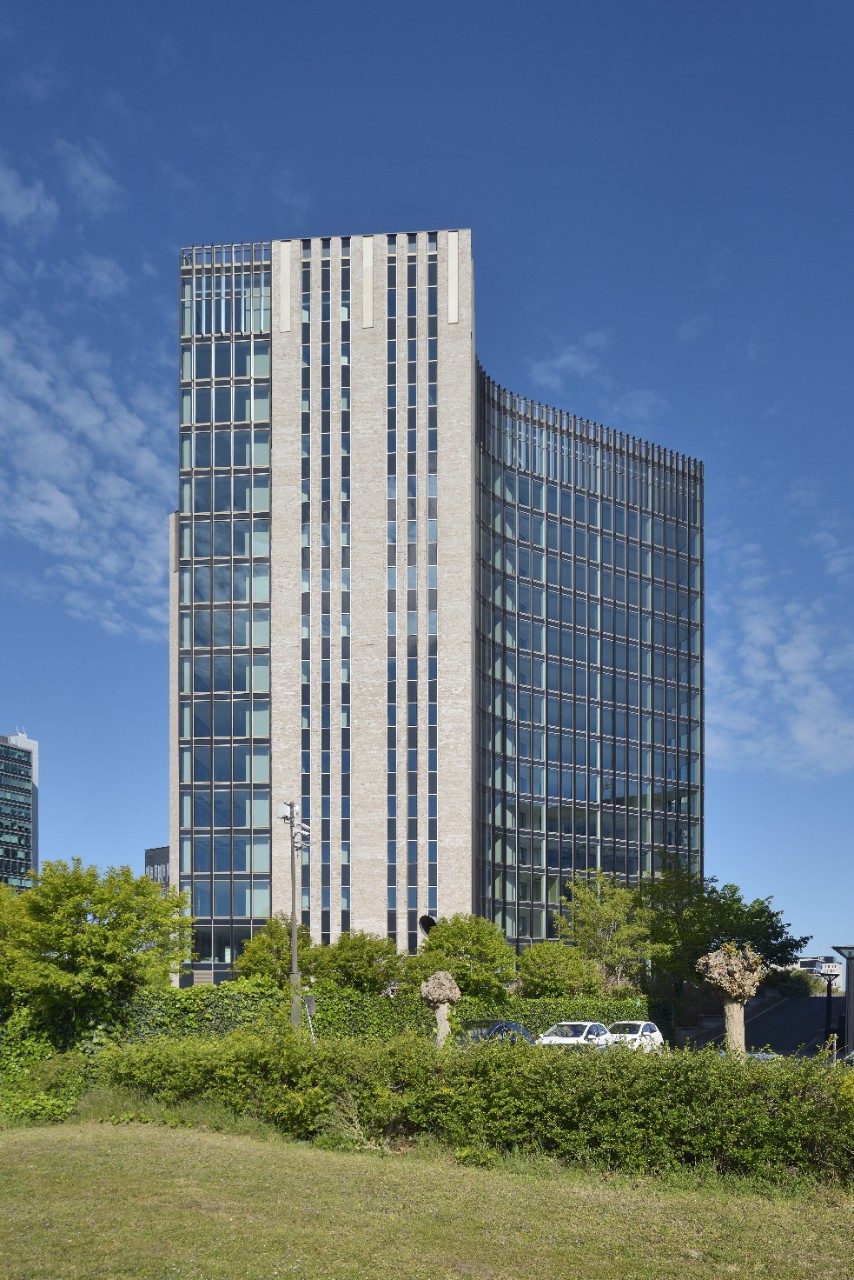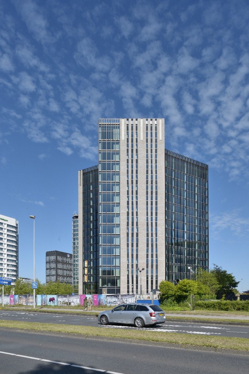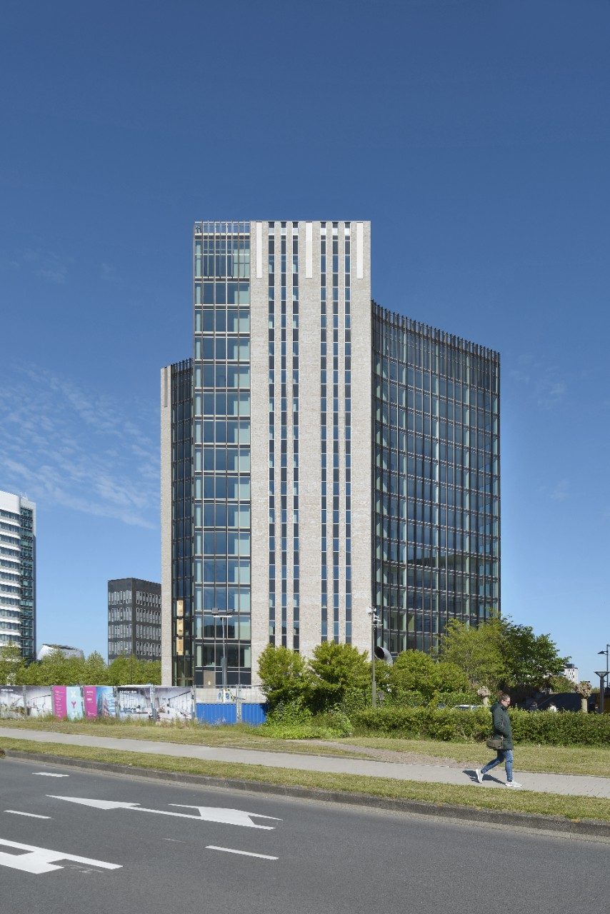 The Oliphant has open floor plans that offer clear orientation and an open view of the surroundings. The curved effect of the facade generates a dynamic, organic connection between the office floors. A strong emphasis on longevity and sustainability is expected to attract a “Very Good” BREEAM certification for the building. The transparent façade helps to reduce the building’s energy demands.