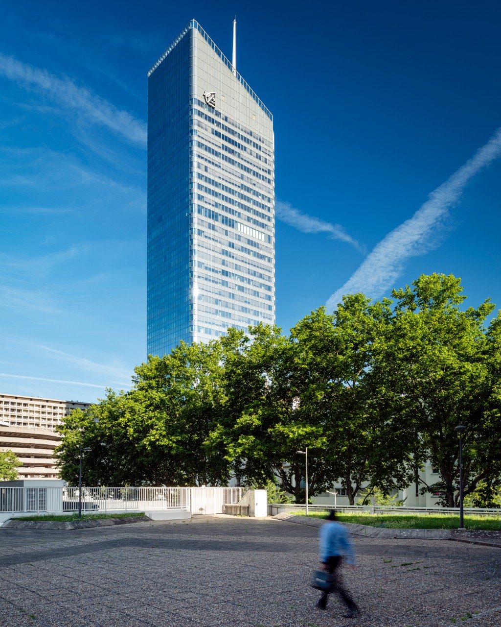 The tower is a symbol of energy efficiency, where the penetration of natural light and the comfort of the workspaces are at the heart of the interior layout. As for its design, the building displays a sleek, elegant silhouette adorned with a sophisticated, aesthetically pleasing glass double skin façade. It is topped by a 50-metre mast and has become one of the symbols of the reinvention of La Part-Dieu business district, offering a magnificent view of the city.