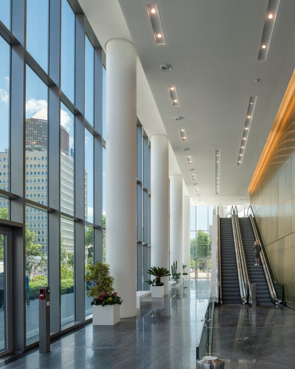 Due to the clever structural glazing, the aesthetics are visually appealing, reflecting the building’s surroundings on all sides.