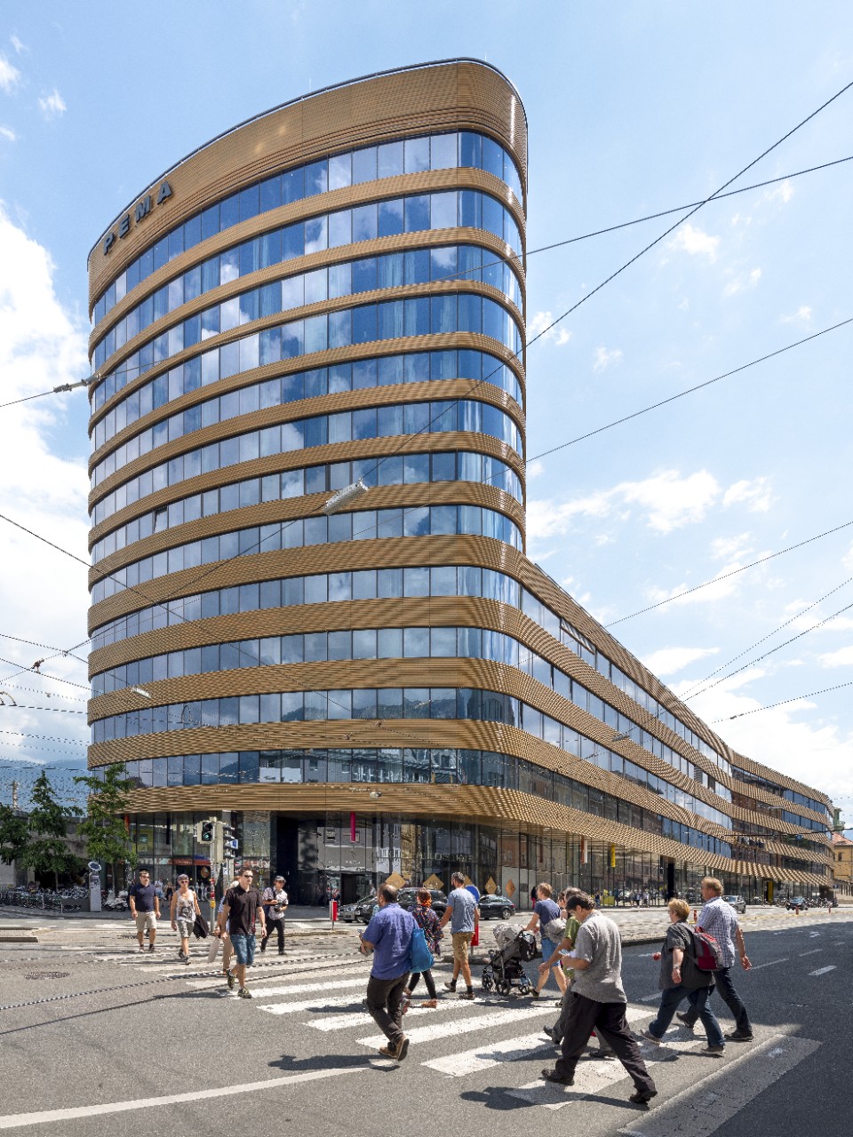 Diseñado por los arquitectos vieneses Henke y Schreieck, "Headline" fue el primer rascacielos que se construyó en el centro de Innsbruck desde los Juegos Olímpicos de 1976. El edificio comercial y de oficinas, moderno y estéticamente agradable, está ubicado junto a la estación central de tren, transformando el aspecto del distrito. Marca la entrada al centro de la ciudad por el este, combinándolo perfectamente con el paisaje urbano.