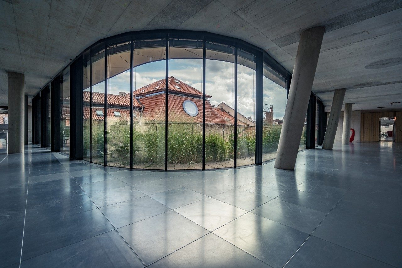 Az építészek semleges megjelenést szántak a teljesen üvegezett homlokzatnak, hogy az üveg ne üssön el a környező történelmi épületektől, amelyek elsősorban bevonat nélküli üveget használnak. A kiváló hangszigetelést nyújtó üvegezés is elvárás volt.