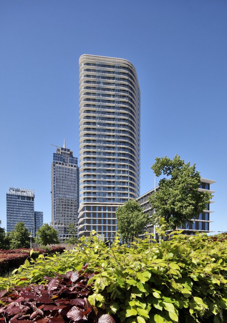 È stato scelto Guardian SunGuard SuperNeutralTM SN 62/34 per la facciata completamente in vetro. Il vetro combina un eccezionale controllo solare con un'elevata trasmissione della luce e un basso valore U di 1,0. Il rivestimento multifunzionale riduce al minimo la necessità di luce artificiale e offre un eccellente isolamento termico, garantendo il comfort degli occupanti dell'edificio in qualsiasi momento. Con un colore neutro trasmesso e riflesso, il vetro è ideale per le facciate completamente in vetro e offre ai residenti una vista chiara e senza ostacoli sulla città.