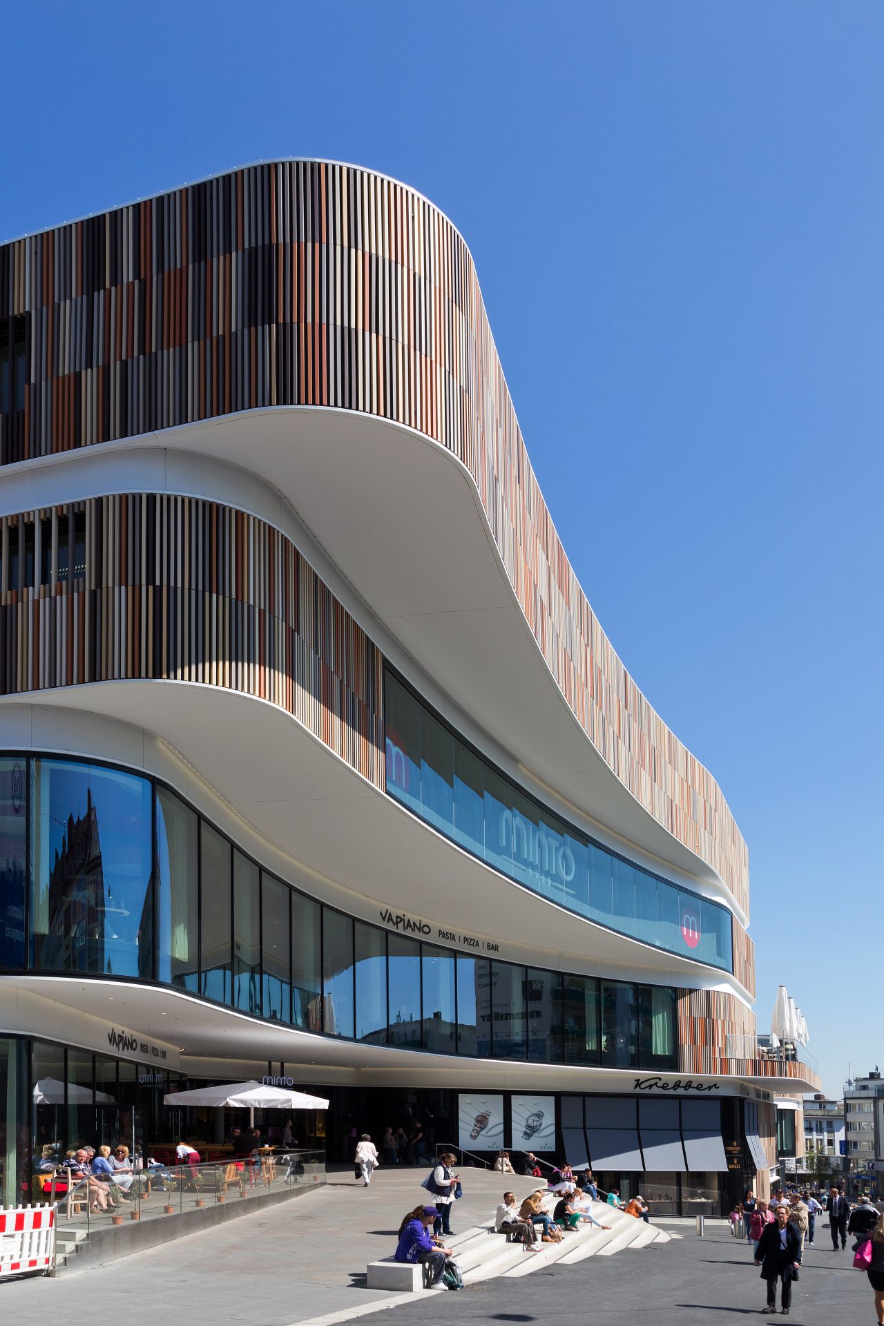Fasada otwartego w 2015 roku centrum Minto, została zaprojektowana przez biuro kadawittfeldarchitektur z Aachen. Budynek pokrywają wstęgi, sięgające od podłogi do sufitu i wygięte do wewnątrz a ich trójwymiarowe kształty w różny sposób oddziałują z miejskim otoczeniem. Miękkie krzywizny pionowych lamelowych pasów przyciągają uwagę przechodniów do wejść, tworząc tarasy i zadaszone otwarte przestrzenie, co odwołuje się do funkcji fasady jako łącznika między budynkiem a przestrzenią miejską.