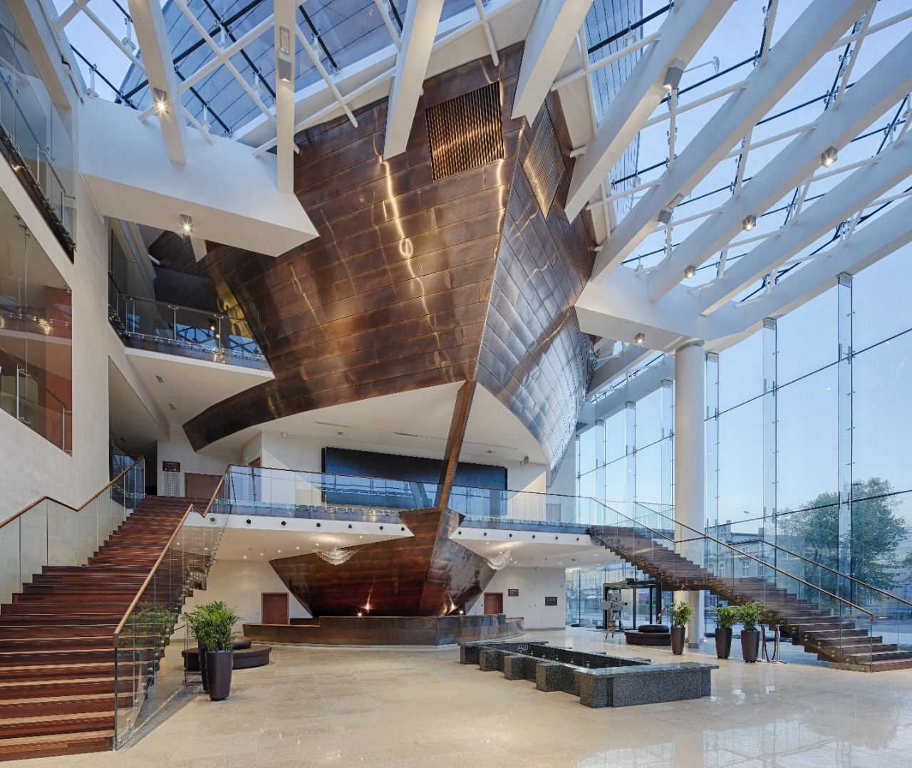 Duża część budynku, między innymi sala koncertowa, foyer i kawiarnia, jest przeszklona w celu zapewnienia gościom i pracownikom optymalnego komfortu termicznego i dużej ilości naturalnego światła dziennego. Właściciel budynku wybrał powlekane szkło przeciwsłoneczne Guardian SunGuard SN 70/41, które zapewnia wysoką przejrzystość i neutralny, odbijający wygląd.
