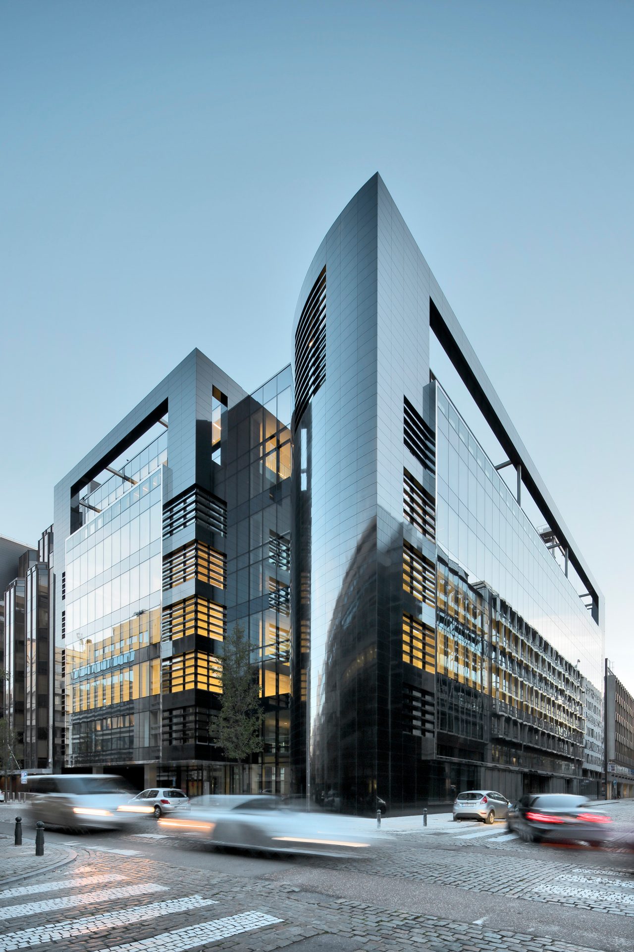 Graças ao envidraçamento estrutural inteligente, a estética é visualmente apelativa, refletindo o ambiente envolvente do edifício em todos os lados.