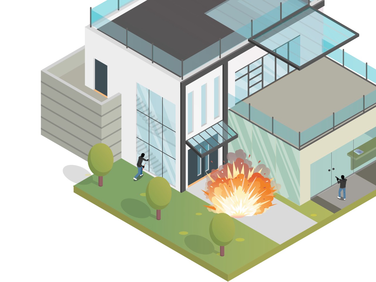 As configurações do vidro de proteção foram concebidas para ajudar a proteger os ocupantes dos edifícios de ferimentos ou perdas provocados por ações deliberadas ou intencionais.