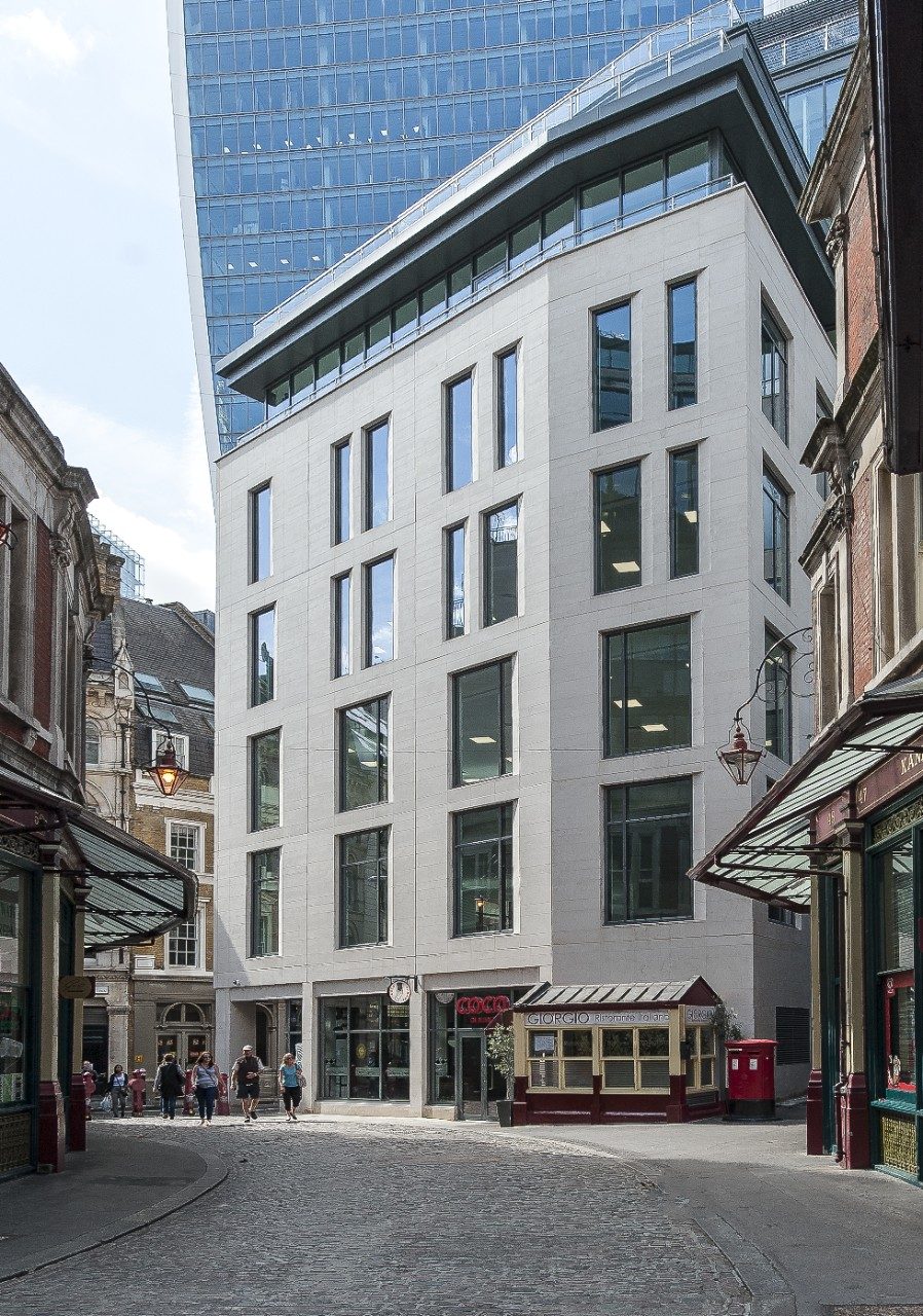 Designed by Leach Rhodes & Walker LLP, 21 Lime Street stands at the entrance to the iconic Leadenhall Market in the heart of London. Completed in 2017, the redeveloped building has an unusual, distinct shape that provides 35,000 square feet of commercial office and retail space.