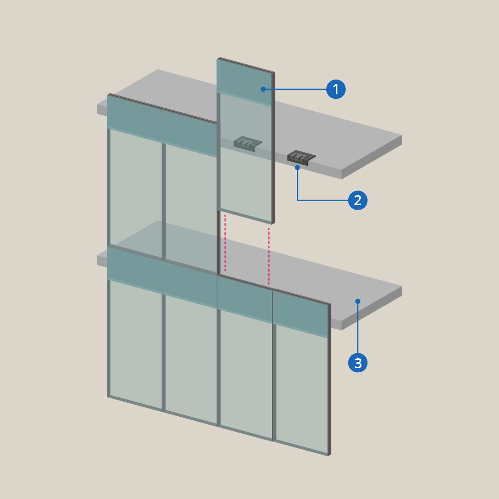 * Although the glass represents most of the curtain wall surface, the energy and sound control performances also depend on the performance of the other elements of the curtain wall system, and how well the elements perform all together as an assembly.