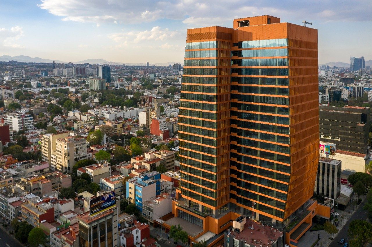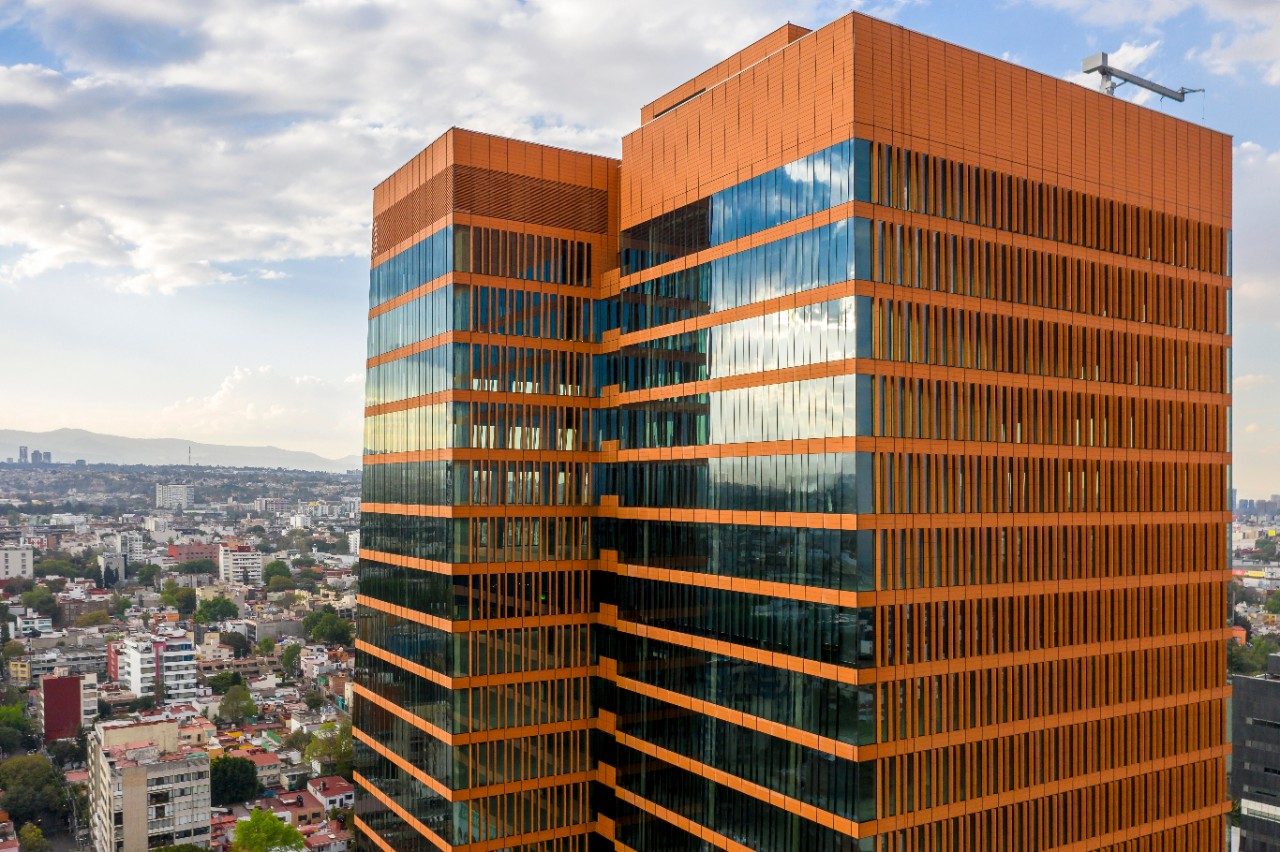 La torre Carracci Corporate en Ciudad de México, en México, de Colonnier Architects, cuenta con SunGuard® SNX 51/23. La torre adquiere presencia con un carácter innovador, los materiales de la fachada crean una extraordinaria combinación de volumetría de muro cortina y fachada de terracota ventilada. Gracias a la excelencia en diseño, calidad e innovación en equipos instalados y sistemas de construcción adecuados, el edificio busca la certificación Plata de LEED.