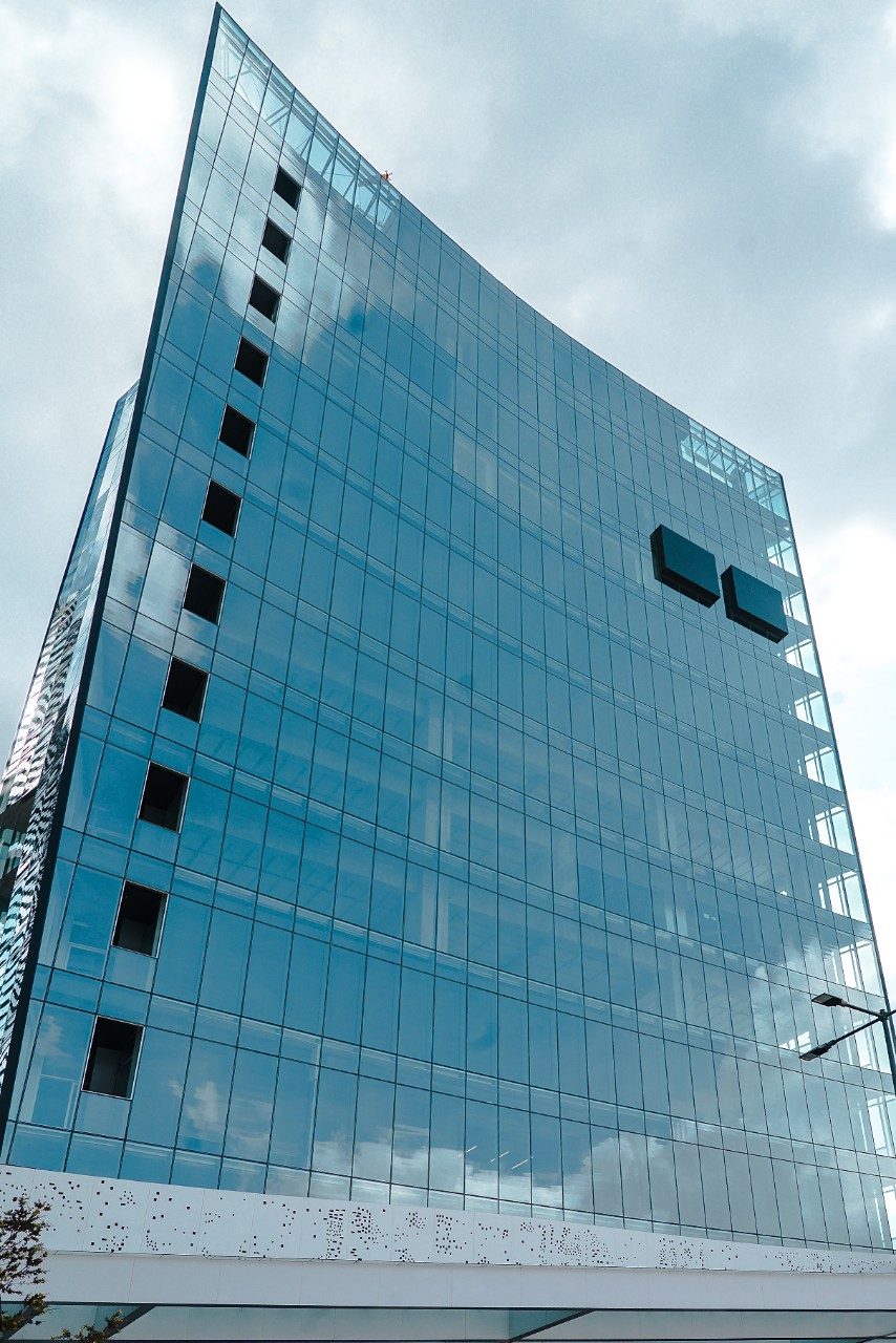 La torre Komplex de Puebla, México, del arquitecto Juan Pablo Kuri, cuenta con SunGuard® AG 50 en vidrio transparente. La torre de vidrio de alto rendimiento se eleva en el horizonte de la ciudad enmarcada con la fachada futurista del centro comercial que representa un lugar importante para los negocios, el placer y el estilo de vida.