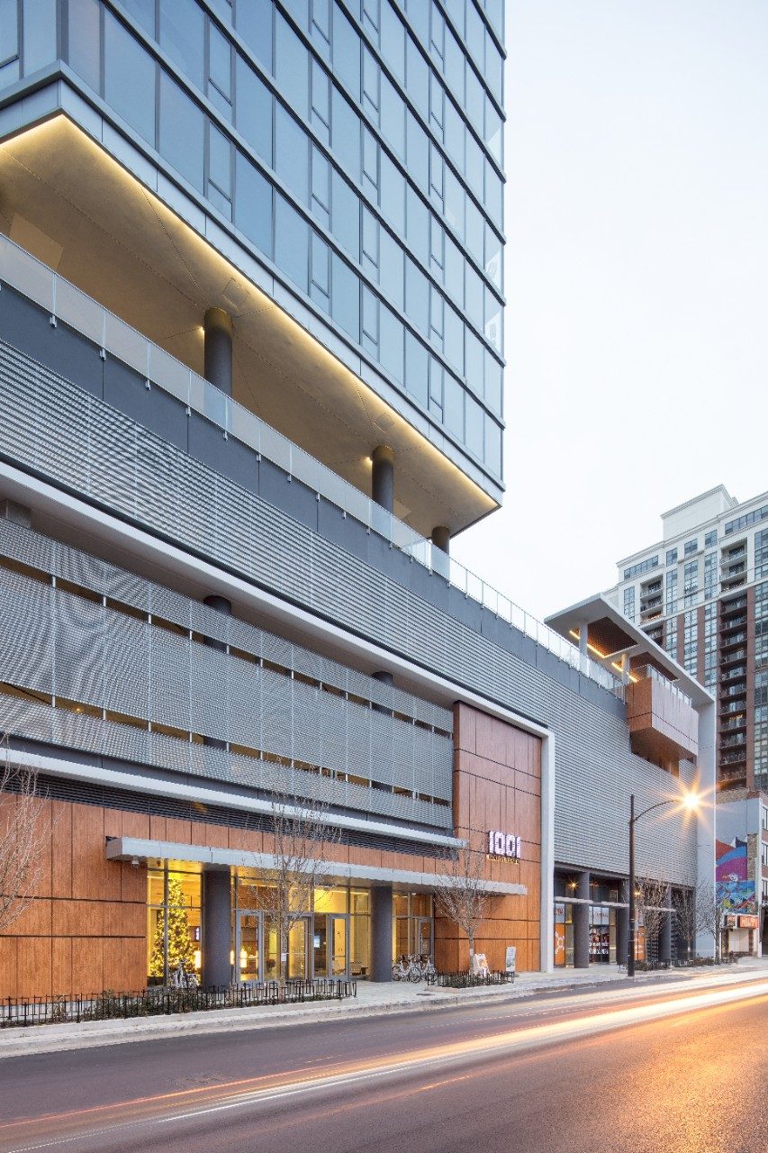 A new residential development located in the Wabash arts corridor of Chicago’s South Loop neighborhood, this 510,000-square-foot tower includes 38 levels of apartments set atop a four-level podium, clad in SunGuard® Advanced Architectural Glass — SuperNeutral® 68 on clear and Neutral 78/65 on clear .1001 South State has a LEED® Gold Certification and offers many amenities. Their Makerspace includes a CNC milling machine and 3D Laser Printer ready for residents to design and create.